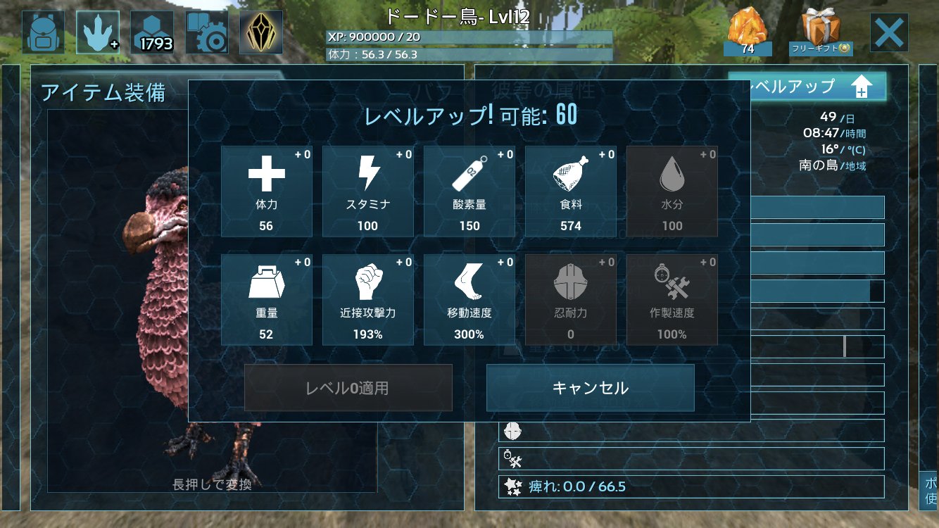 Degnuuさんのツイート Ark モバイル メモ 恐竜のレベルアップは60が限界 なので テイム後 その難易度の限界のレベルから60引いたレベルの恐竜が最もステータスをのばせる ザル検証です 間違ってたら指摘お願いします Arkモバイル Arkmobile T